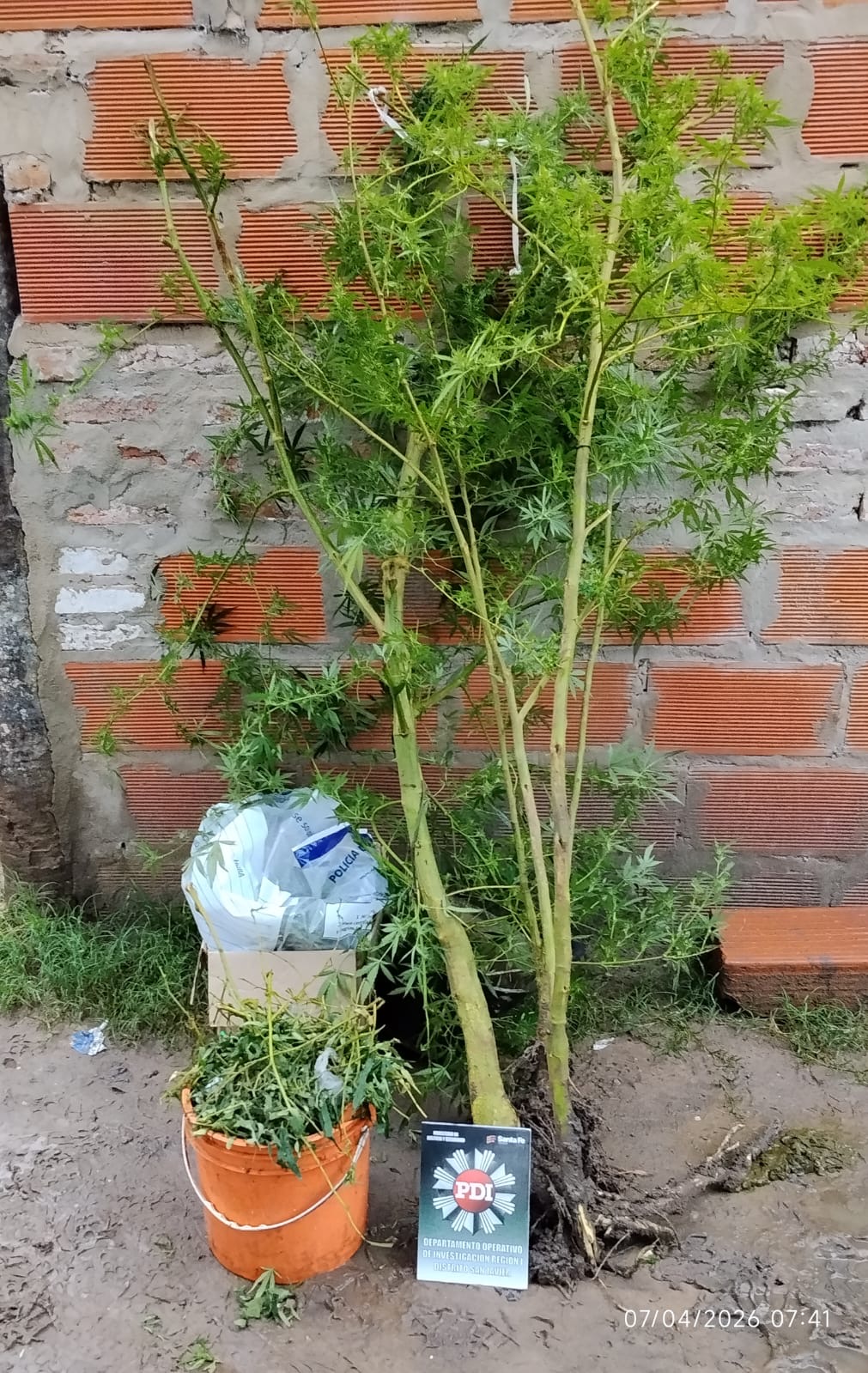 Durante el procedimiento también se incautaron (04) plantas de cannabis sativa de 1.60, 1.50, 1.70 y 0.55 metros de altura, (01) balanza digital, 2.545 gramos de cogollos y restos vegetales de cannabis sativa (6.6 gramos) de semillas de cannabis sativa. Por ello, al detenido se le inició también una causa por Microtráfico.
