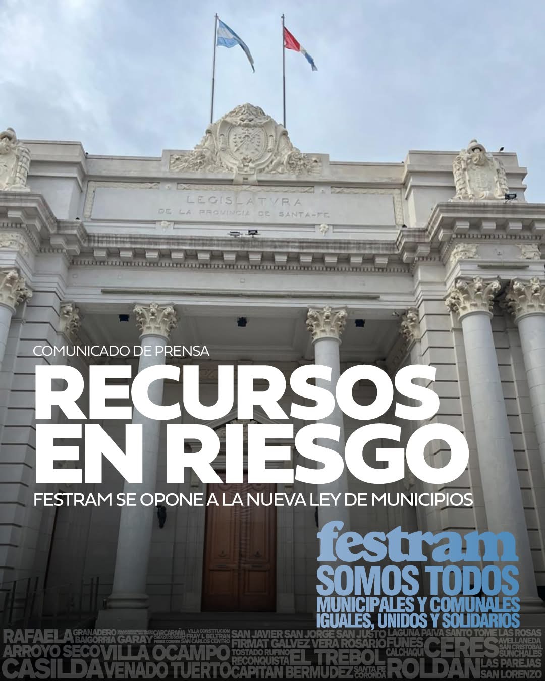 FESTRAM advierte que se encuentran en riesgo los recursos de los Municipios y Comunas, y en consecuencia convocamos a sus autoridades a poner de manifiesto la necesidad de garantizar en el orden provincial un esquema de coparticipación que contenga igualdad de trato y garantía de que el trabajo municipal y su remuneración se presten en condiciones de dignidad.