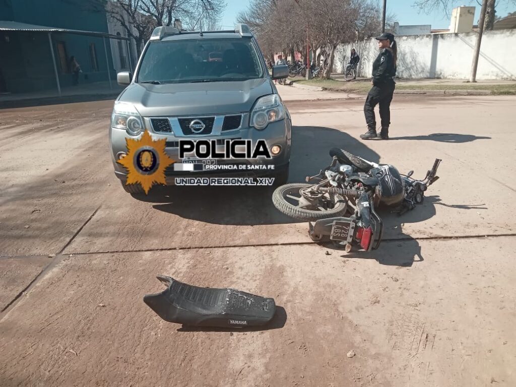 Otro incidente sucedió cerca del medio día, en Avenida Alvear y calle Santiago Cabral, en el que por razones que se tratan de establecer una camioneta marca comercial Nissan conducida por una mujer de 35 años, acompañada por un menor, entró en colisión con una motocicleta marca comercial Yamaha 125cc conducida por una jóven de 21 años, de dicho incidente la conductora del birrodado sufrió lesiones, en cuanto a los ocupantes de la camioneta resultaron ilesos.