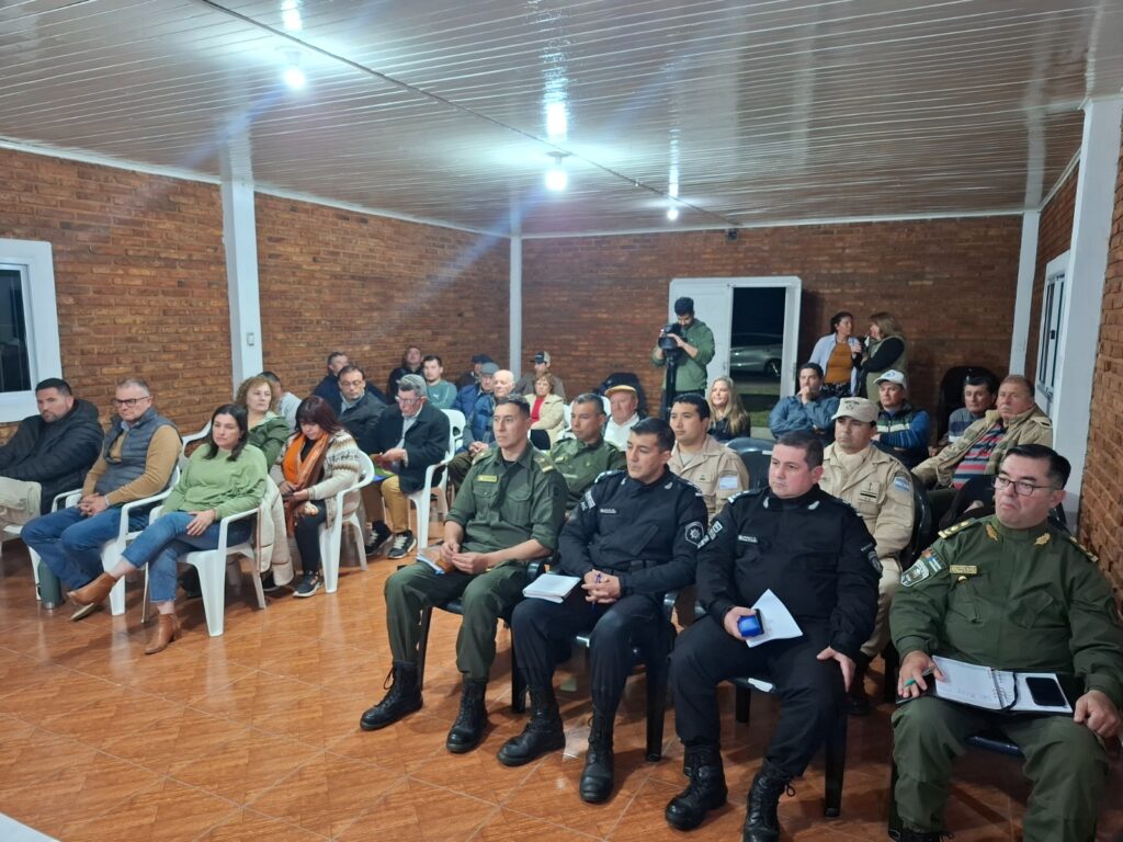 La Intendente Maribel González, acompañada por el Secretario General, Marcial Bugnon, y el Secretario de Desarrollo Productivo, Pablo Emiliano Díaz, participó de la reunión convocada por la Sociedad Rural de San Javier, donde se abordó la problemática del abigeato y la inseguridad en las zonas rurales.