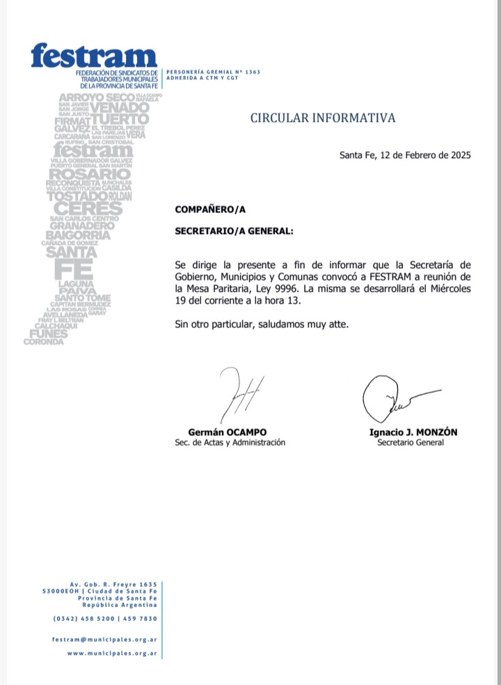 REUNIÓN PARITARIA DE MUNICIPALES DE LA PROVINCIA .-