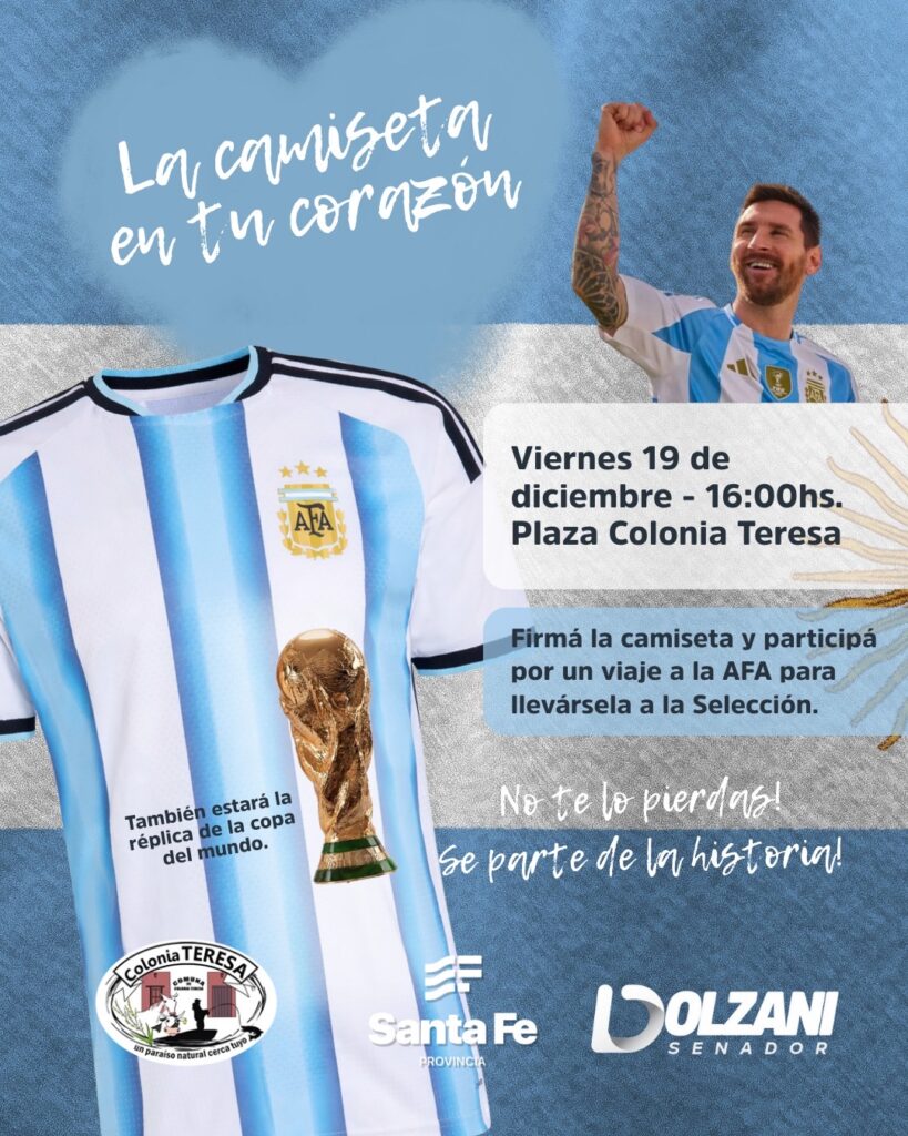 Llega una camiseta gigante, de más de 20 metros a la plaza de Colonia Teresa. La misma recorre toda la provincia🚍